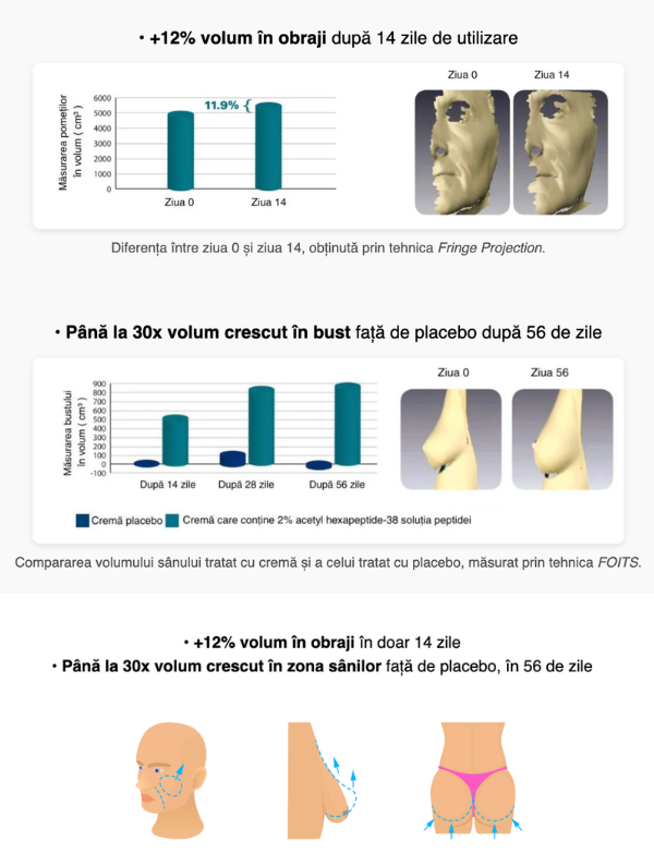 •‎‎‎‎‏‏‎ Rezultate vizibile – +12% volum în obraji în 14 zile, până la 30x volum în bust în 56 zile
